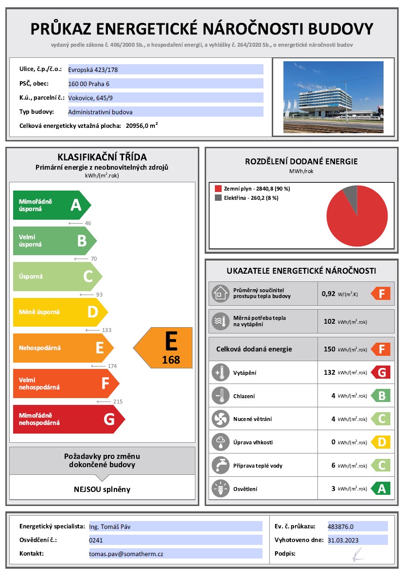 The administrative building was completed in 1977. It was designed by architects Stanislav Franc, Jan Nováček and Vladimír Fencl. It was originally occupied by Koospol; the foreign trade business of Czechoslovakia. Since 1989 it has been home to large international firms most notably T-Mobile and Citibank.